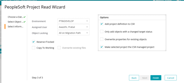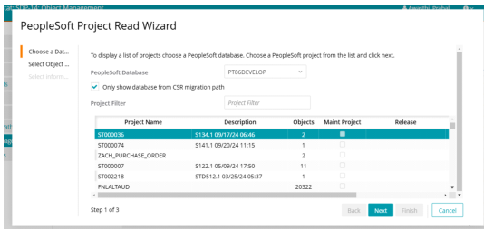 Users can add objects directly from PeopleSoft projects. Based on the inputs provided, the Stat Web Client shows the number of objects associated to that particular PS Project.
