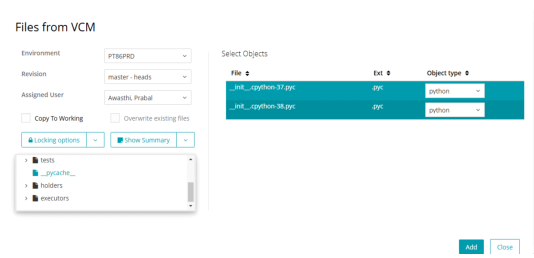 You can use the Add Objects to a CSR from VCM feature to add multiple file objects at once to your CSR from a VCM repository. Following operations are supported for an imported VCM repository: