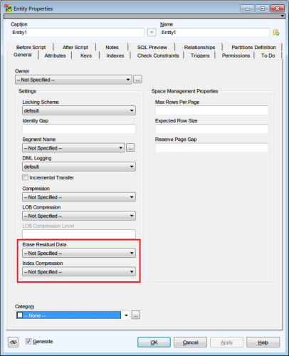 ERASE RESIDUAL DATA, INDEX COMPRESSION parameters