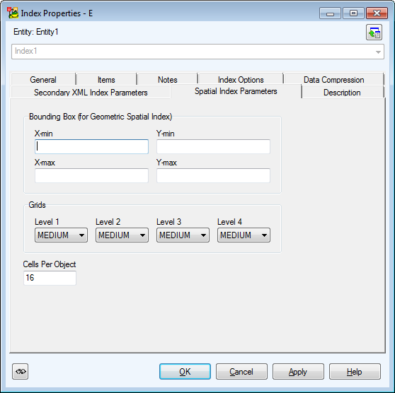 Spatial Index Parameters Tab