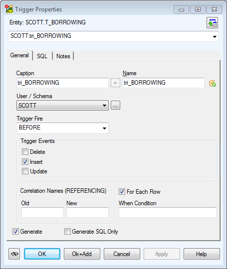 Used Sequence (trigger) - From this box, you can select a sequence that you want to use for the attribute. (A new trigger will be created in SQL script.)