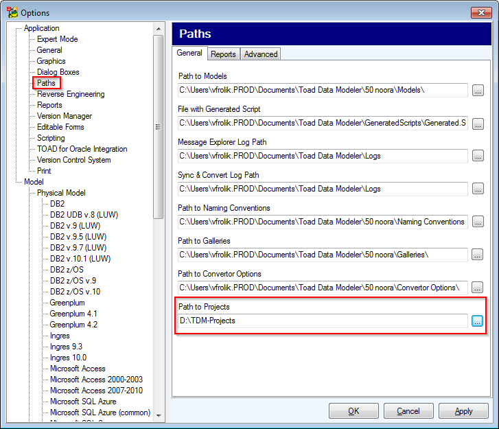 Configure Toad Data Modeler to work with Git in Options | Application | Version Control System. The values set here will be your default values for setting up new repositories in Toad Data Modeler.