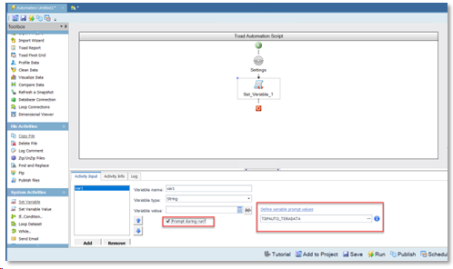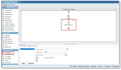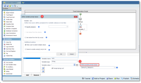 In Toad Automation, the options for creating a list of predefined variable values are available when using Set Variable from System Activities as an automation step.