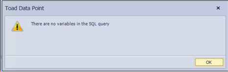 If there are no variables in the SQL script, clicking on the Variables button will raise the following message: