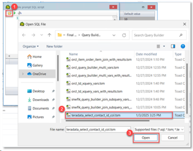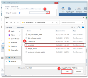 Toad also allows you to load the variable values from a file by clicking on the ellipsis button (…) and selecting a specific .txt or .csv file.