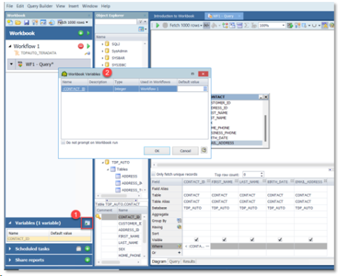 If another variable is defined with the same name (variable1) in Workflow 1, there will be only one variable present with that particular name in the Workbook Variables dialog, and the values that were initially defined in Workflow 2 will also be used in Workflow 1.