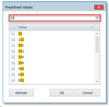 • The Refresh button which can be used to refresh the predefined list of values if they are obtained through Get values from the column or Get values from the SQL script options.