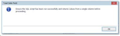 If the specified query returns a result set with more than one column, it will not be valid and the following message will be displayed (the same message will appear if the query is not run).