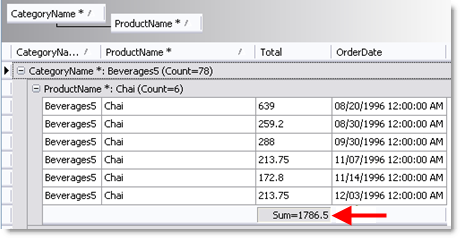 Tip: If you have grouped columns using the Grouping panel (Show | Grouping Panel), you can also add a subtotal value to grouped records, as shown in the following example: