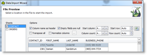 6. On the File Preview page, you can specify some import options, for example: