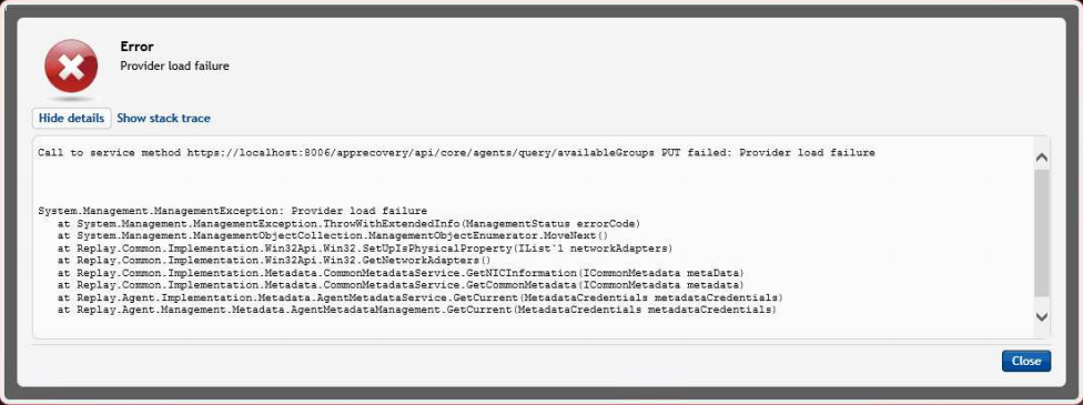 Broadcom drivers tend to be pretty frequent causes to this error for P2V Agents. On the affected Agent, ensure that the Broadcom manager software is removed from the system because it is no longer necessary.
