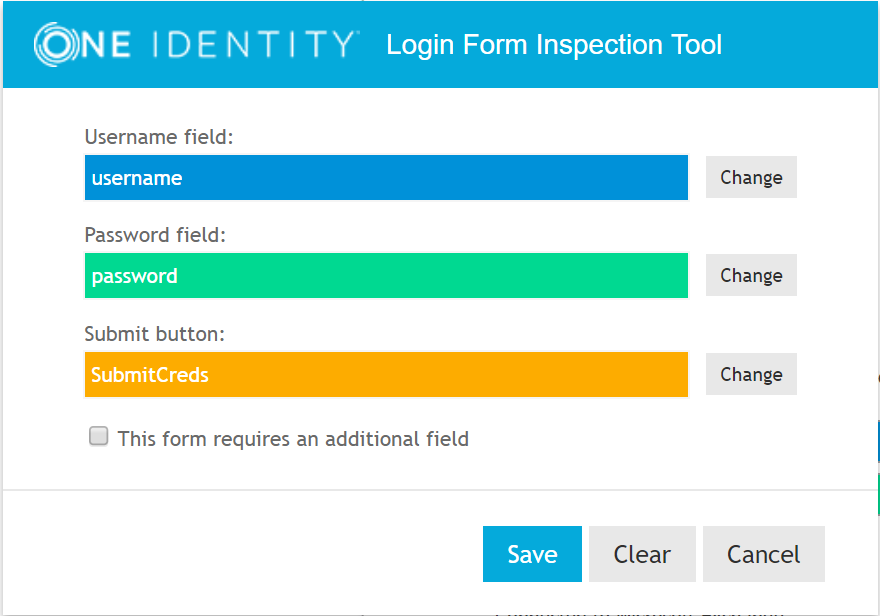 Use the tool to obtain the field IDs for the login form. For example, if required click in the Username field for the field where a username needs to be entered, then if required click in the Old password field for where to enter the old password, and finally click in the New password field for where to capture the new password from.