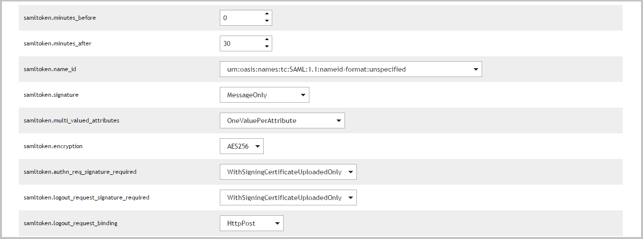 In most situations the SAML token produced by Cloud Access Manager in response to an authentication request is accepted by the service provider. If the service provider has special requirements for the way the token is configured then you may modify the token options on the SAML Token Settings tab for the application.