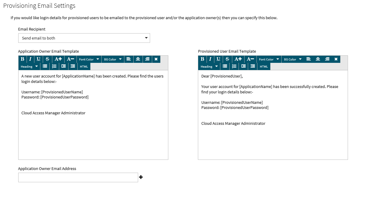 12. Select who will receive an email when a new account is provisioned and enter the text to include in the email.