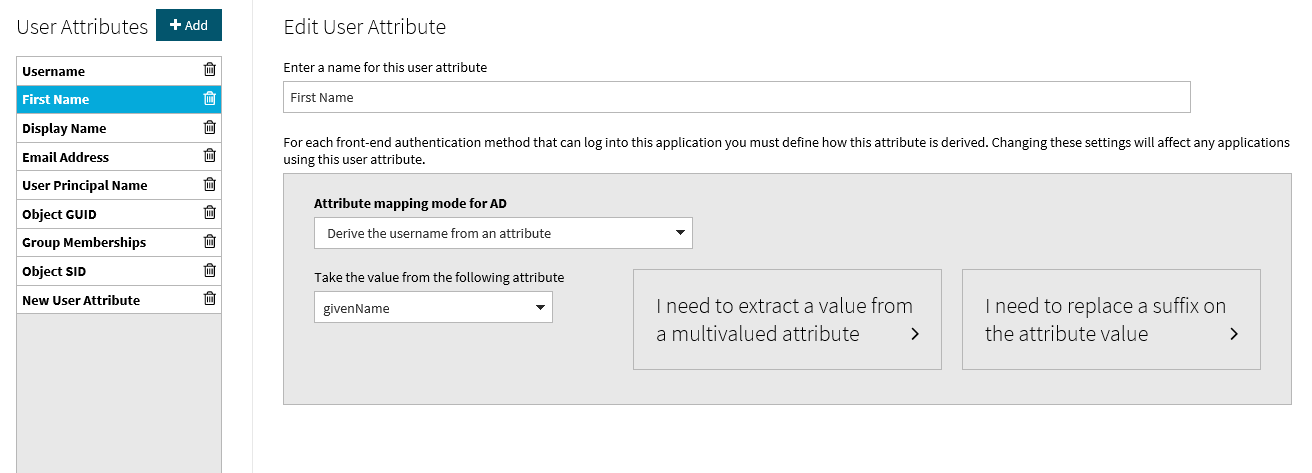 10. Select the Derive the username from an attribute option and enter an attribute name of mail, then click Next.