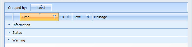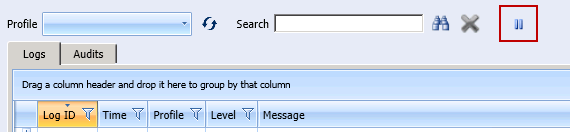 • Drag a column header to the bar above the table to group the log or audits by a specific column. The table refreshes grouped by the selected column.