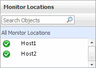 Selecting All Monitor Locations shows a list of all host names in the Summary - All Monitor Locations view on the right. Similarly, selecting a location in the list shows location-specific metrics in the Single Location Summary view view on the right.