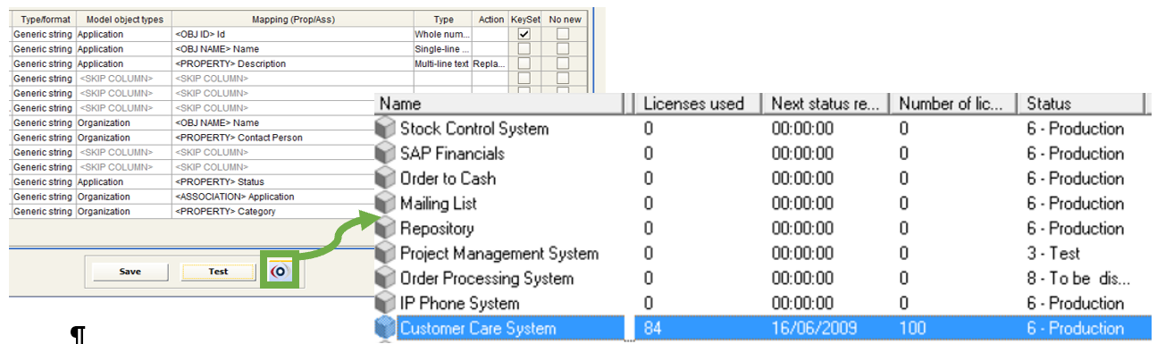 Note that the keyset for operation is set to “<Property> CIID” to manage the renaming of applications. The “Forced replace” option under ‘Action’ for “TXT_SERVICE_NAME” will make the association between “applications” and “IT services” be replaced even when associations are diagrammed.