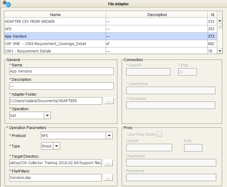 Choose previously configured file adapter for vendor info: