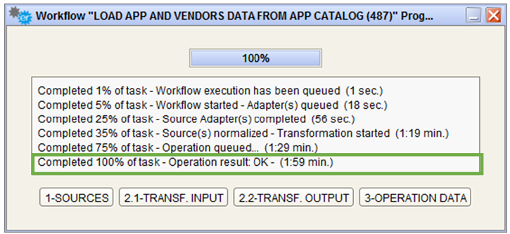 At the end of workflow transformation if operation data is available and ready, the user may choose whether to execute the operation or not: