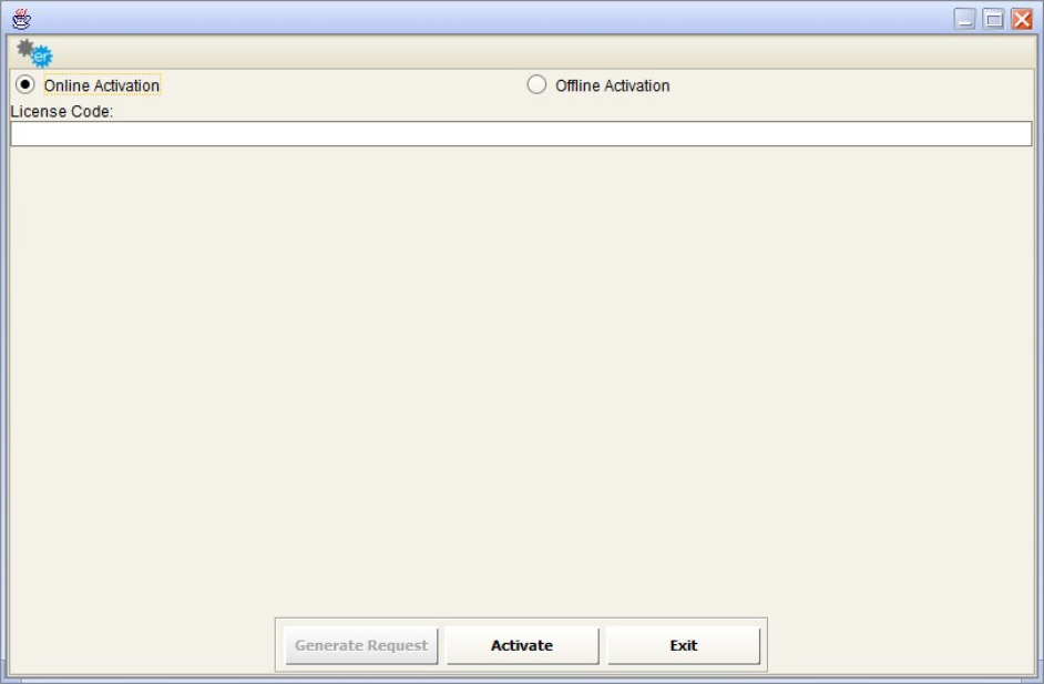 For offline licensing, a request code must be generated. This window should not be closed until the product activation is complete, as a new request would otherwise need to be generated.