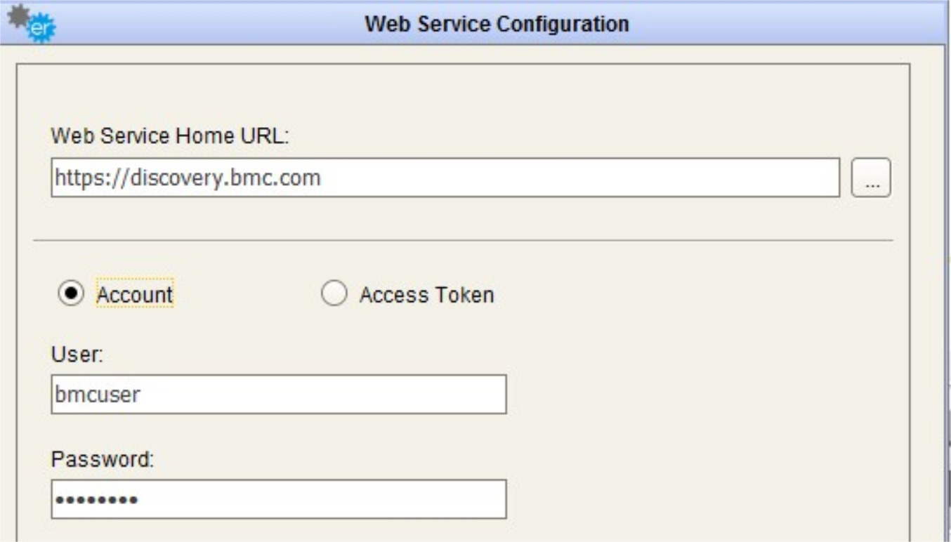 To use the adapter for BMC Discovery, fill the field “Web Service Home URL” with the SmartSheet home page URL you want to connect to. Then provide the username and password for a valid BMC Account or an access token to connect. To generate an access token, please refer to BMC Discovery System Administrator