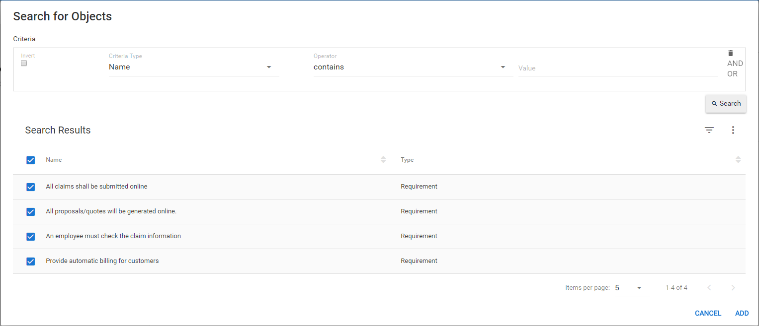 In the section that opens click Search, when you selected the object type on the previous screen you already limited the object type and we want all objects of that type.