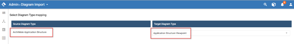5. Map the ArchiMate Application Structure diagram to the same type from the drop down ;
