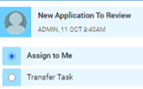 When a task is assigned to you as 'My Tasks', you can either assign it to yourself, or transfer it to another user.