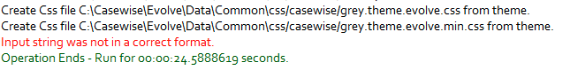 Should a theme still be incompatible with the installed version of Evolve, the following error can appear in Evolve Designer when you Deploy Dynamic/Static site: