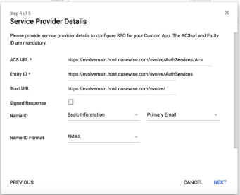 Assertion Consumer Service (ACS) URL: https://YOURURL/evolve/AuthServices/Acs
