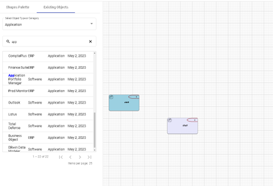 A brand new side panel, to the left of the diagram, which allows modelers to filter and add existing objects to a diagram in a similar way to the desktop modeler.