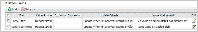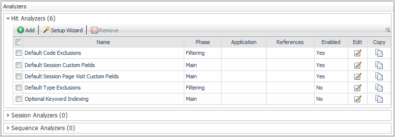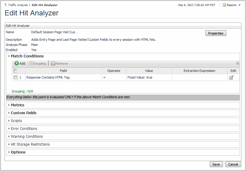 NOTE: When editing a hit analyzer, click Properties to edit the Name, Description, and the Enabled options. |