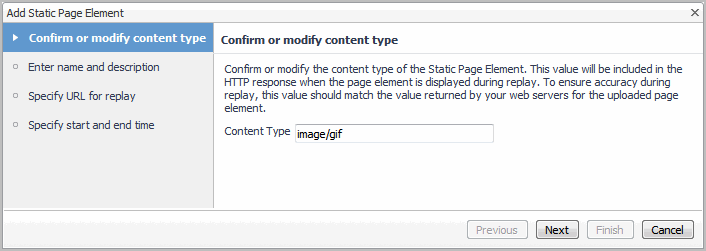 To change the resource associated with this static page element, select Upload new file. Navigate to and select the file containing the web resource you want to use.