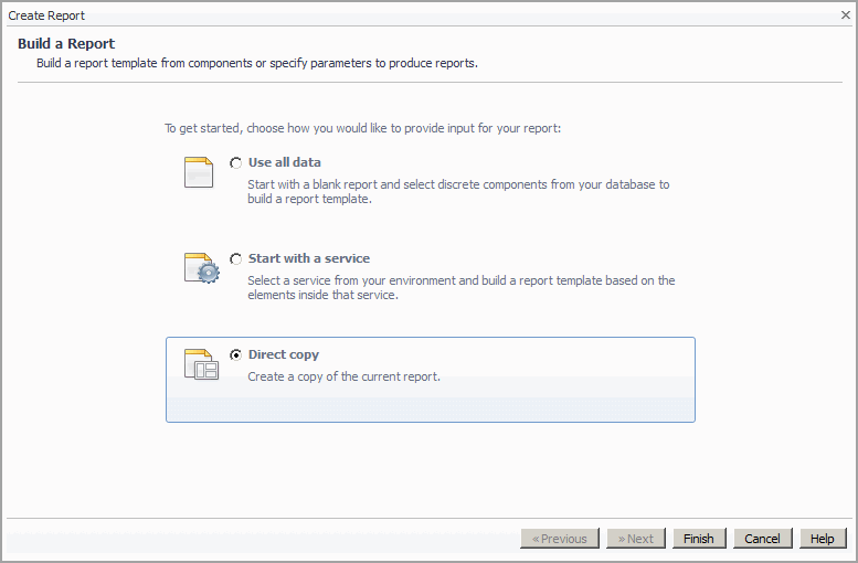 Direct Copy: use the data shown on the current report to build a report template. See Copying a Report. |