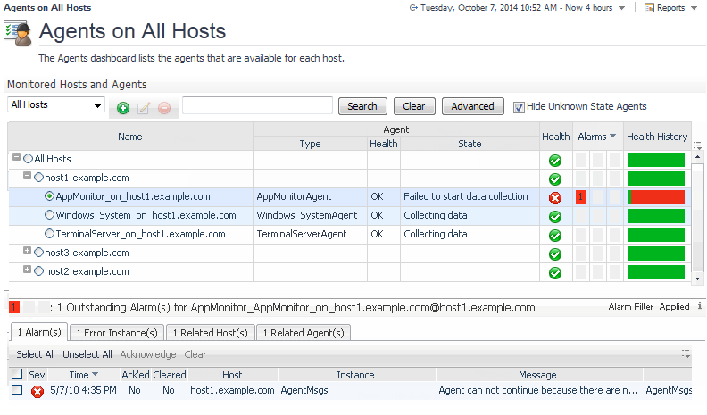 From the Agents on all Hosts dashboard (on the navigation panel, under Homes, click Agents) |