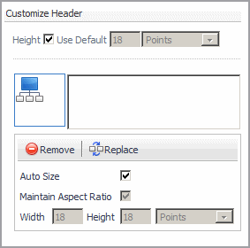 The default height of a header is 18 points. To change the height, clear the Height check box, and set a new height value and unit. |