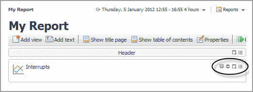 Continue to add views by selecting Add view on the report workspace toolbar or by dragging and dropping data onto the workspace. See Adding a View and Adding a View Using the Drag and Drop Functionality for details. See Working with Views for information about options available for the views that you add.