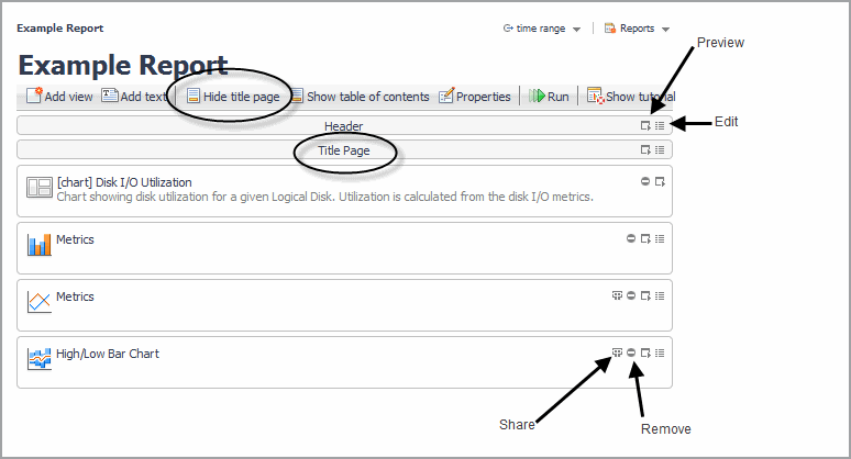 From the report workspace, you can also add other elements (such as text, a header or footer, or a background image). See Adding Text, Customizing the Header or Footer, and Editing Properties for details.