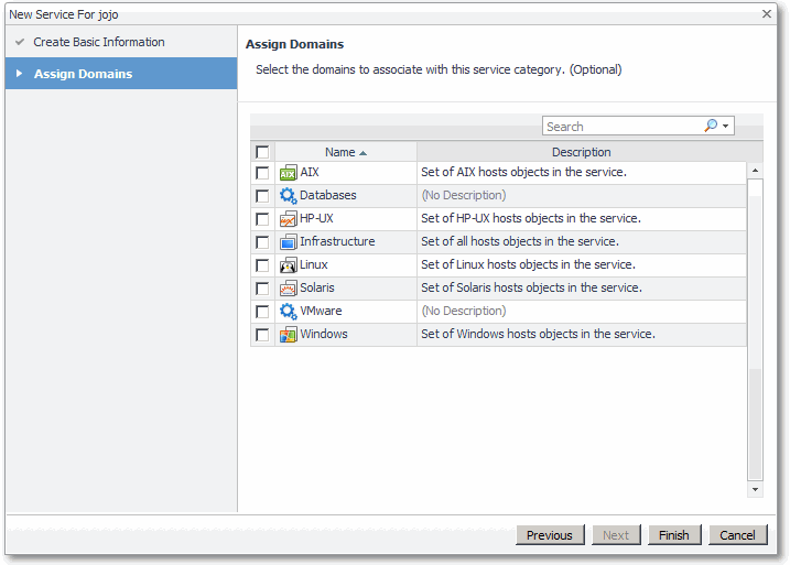 Optional — Select the domains to associate with this service category.