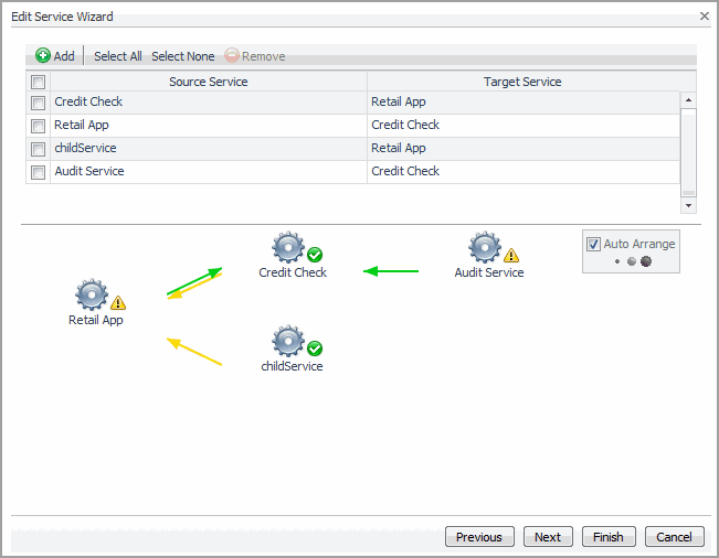 Click the Add icon, set the source and target relationship by selecting the Source Service and Target Service.
