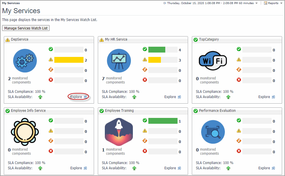 On the navigation panel, under Dashboards, click Services > My Service.