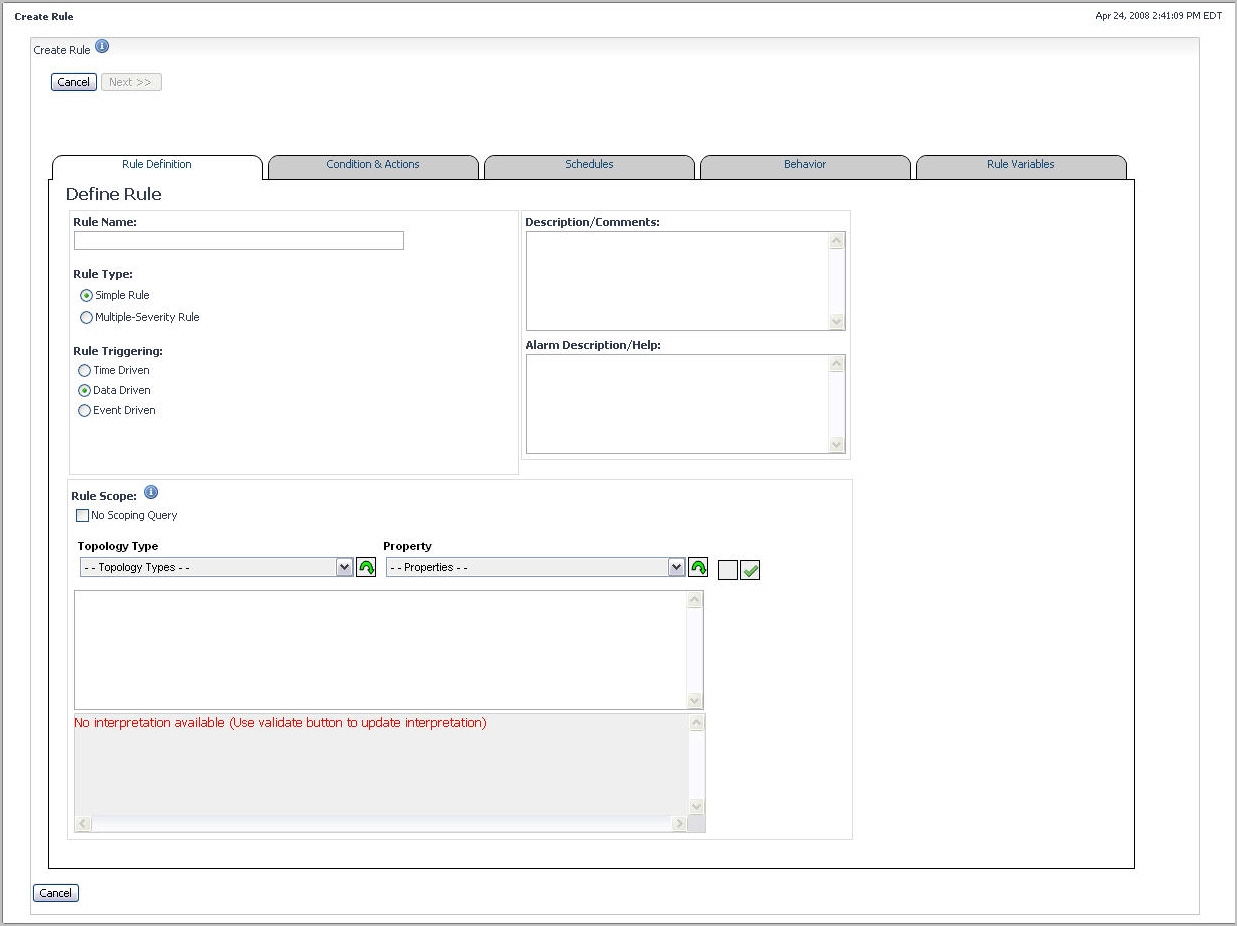 The following procedure describes the process of creating a new rule and binding it to a custom action. For complete information about rules, see the Administration and Configuration Guide.