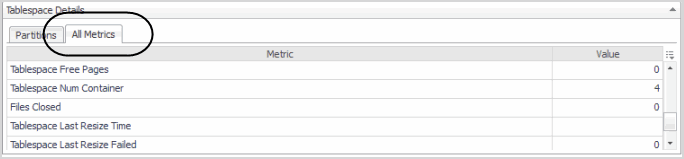 The Tablespaces Pane provides metrics and graphs of the top 10 tablespace activities and summarizes tablespace usage. This pane provides the following views: