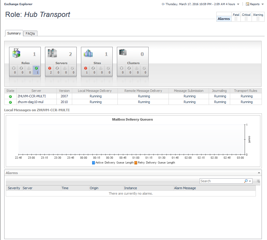 Hub Transport Role Explorer Summary view