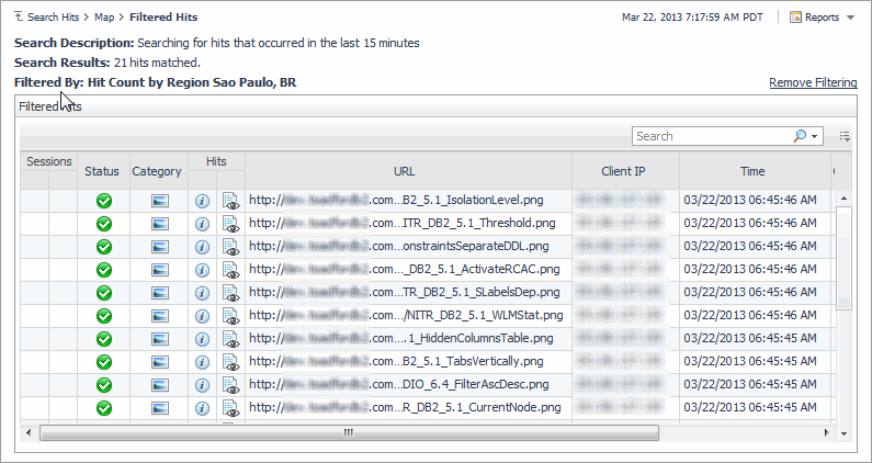 If you want to see all search results in this dashboard, click Remove Filtering. You can return to the subset of results by clicking Restore Filtering.