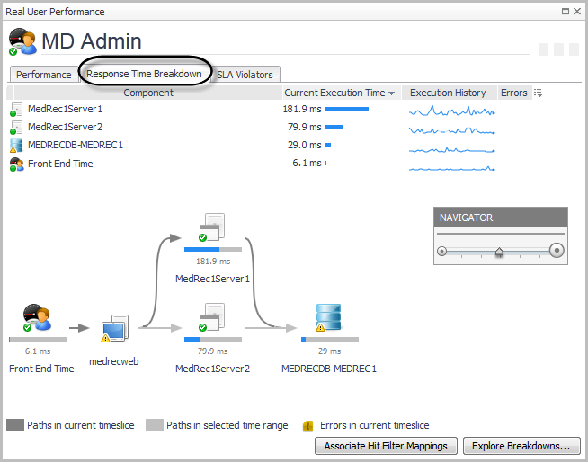 Click More Details to drill down to a detailed view of the selected application component. For example, from an application server component, you can access the Java™ application server details view. |