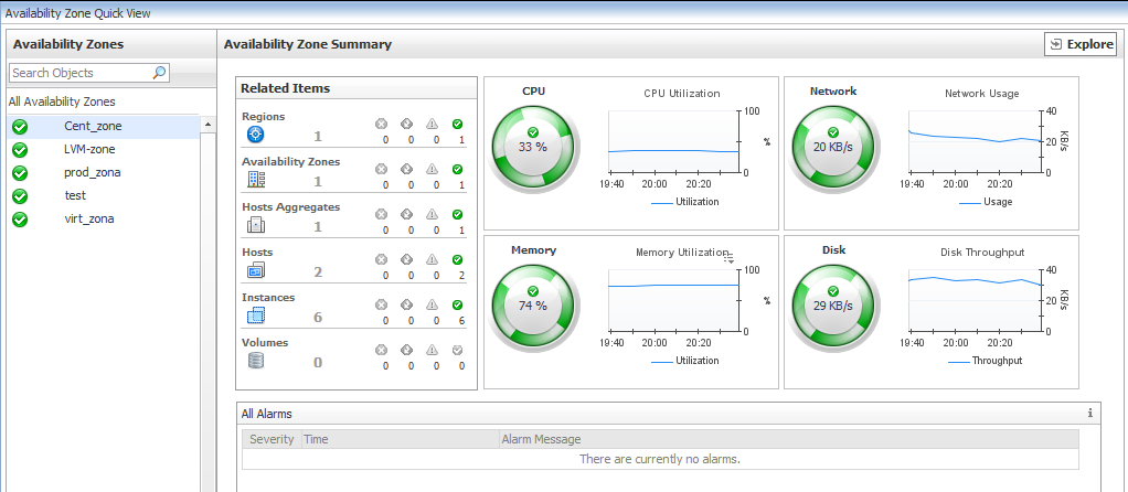 Click the Explore link on the upper right of the Quick View to view detailed information about the selected Availability Zone.