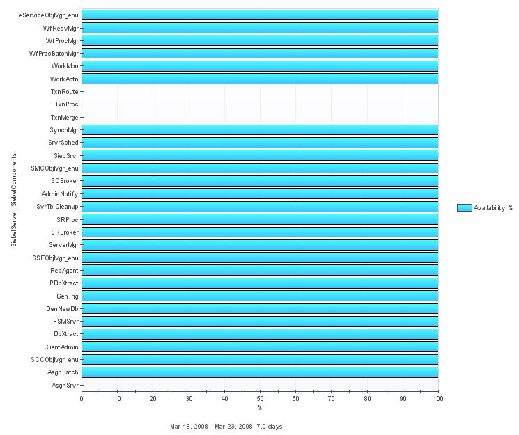 Availability %. The availability percentage of each enabled Siebel component group assigned to the Siebel server.