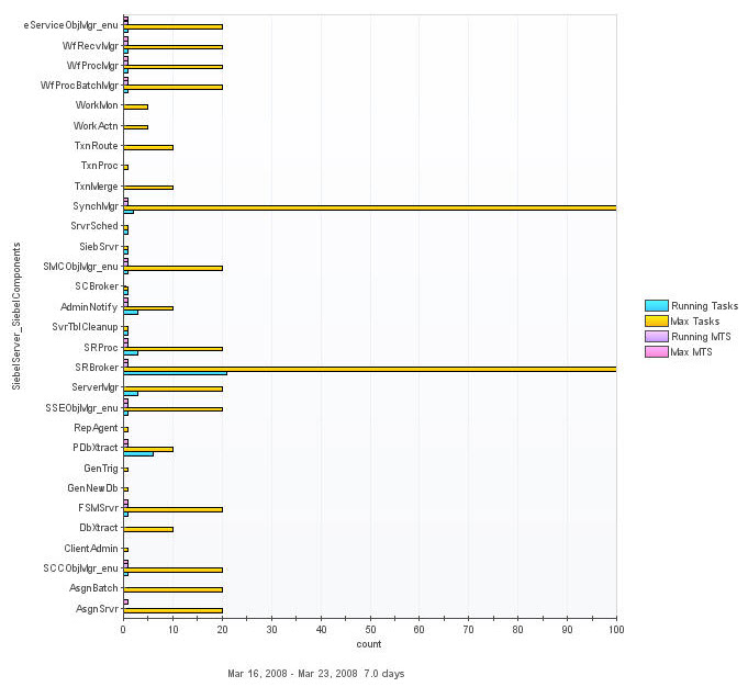 Tasks (count). Total number of Siebel tasks started since the Siebel server started. | |||